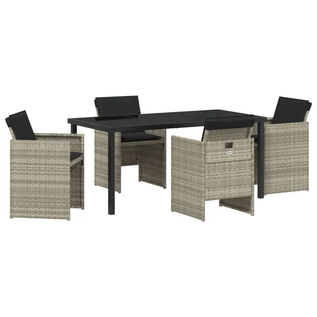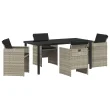 vidaXL 5-delni vrtni jedilni set z blazinami Svetlo sivi Poli Ratan