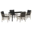 vidaXL 5-delni vrtni jedilni set z blazinami svetlo sivi poli ratan