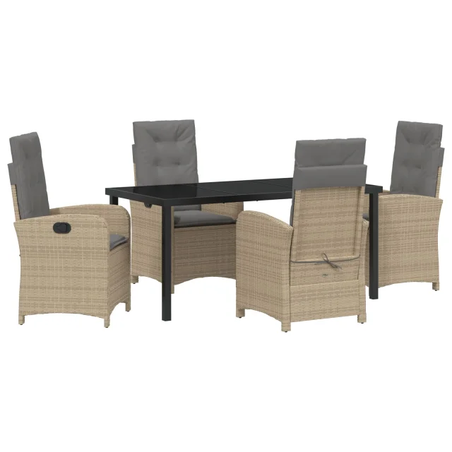 vidaXL 5-delni Vrtni Jedilni Set z Blazinami v Bež Poli Ratan.