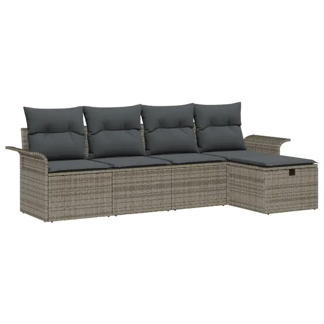 Ta 5-delni vrtni kavč set popolnoma meša stil in funkcijo, kar ga naredi za odlično izbiro za vsako zunanje mesto. Njegova elegantna zasnova in prostorno sedenje prilegata do petih ljudi, kar ga naredi za super prostor za druženje družine in prijateljev ter uživanje na svežem zraku, hkrati pa dodaja moderen pridih tvojemu paviljonu, balkonu ali vrtu.