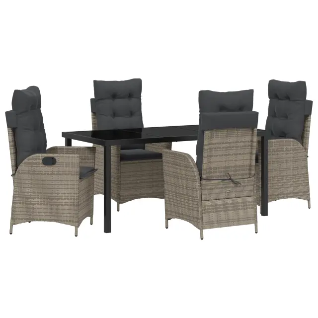 vidaXL 5-delni zunanj jedilni set z blazinami siva poli ratan