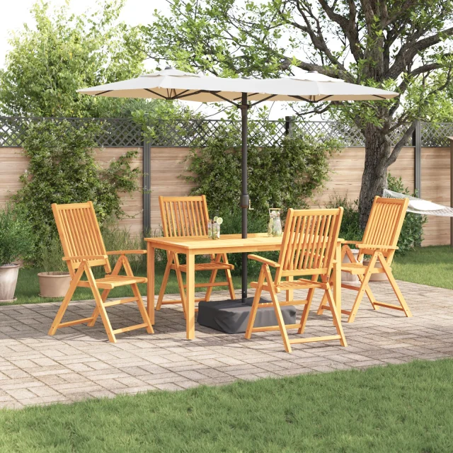 Ta akacijeva lesena vrtna jedilna garnitura je odličen dodatek k vsakemu zunanjemu prostoru. Združuje stil in funkcionalnost. Z dvema zložljivima stoloma vaša terasa ali patio izgleda odlično ter omogoča prijetno jedilno izkušnjo, kar je super za druženja ali mirne obroke.