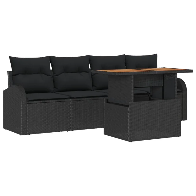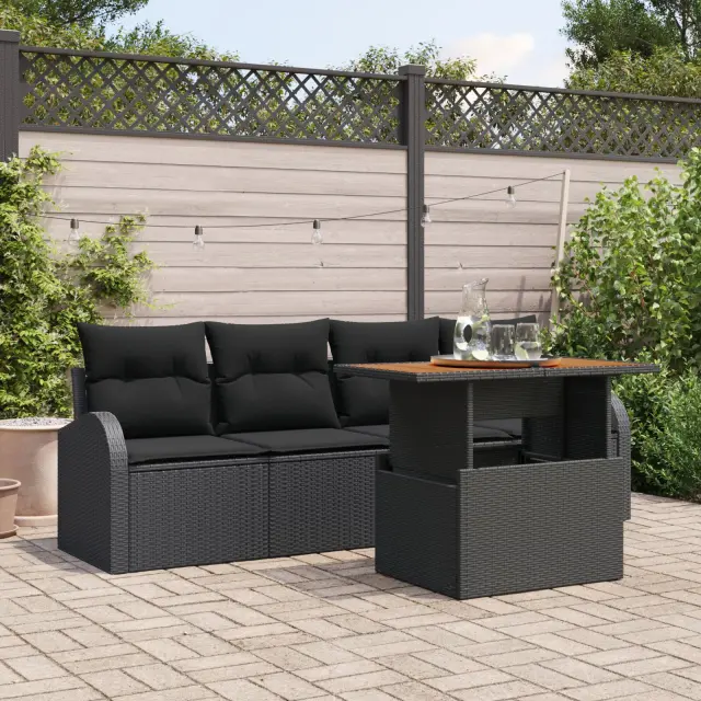 Ta jedilna garnitura za zunanje prostore združuje stil in funkcionalnost, kar jo dela izi izbiro za vaš zunanji prostor. S svojo moderno zasnovo in pleteno površino je več kot le pohištvo; je prijetno mesto za druženje, idealno za sprostitev na vašem vrtu ali balkonu.