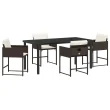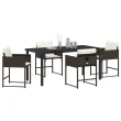 vidaXL 5-delni zunanji set jedilne mize z blazinami Rjava Poly ratan