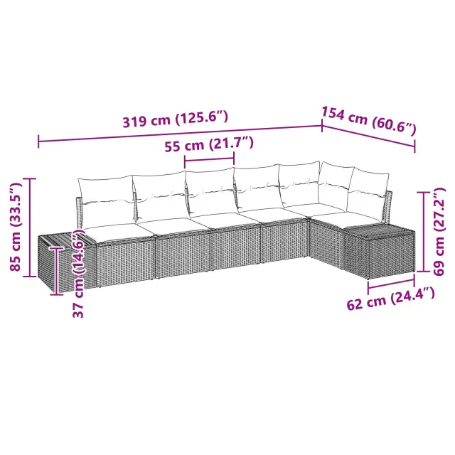 Ta zunanja garnitura za kavč je o slogu in udobju - ravno to, kar potrebujete za sproščanje na balkonu ali patioju. Čudovita mešanica sivega poli ratana in ujemajočih blazin je moderen dodatek, ki vas spravi v sprostitveno in družabno razpoloženje.