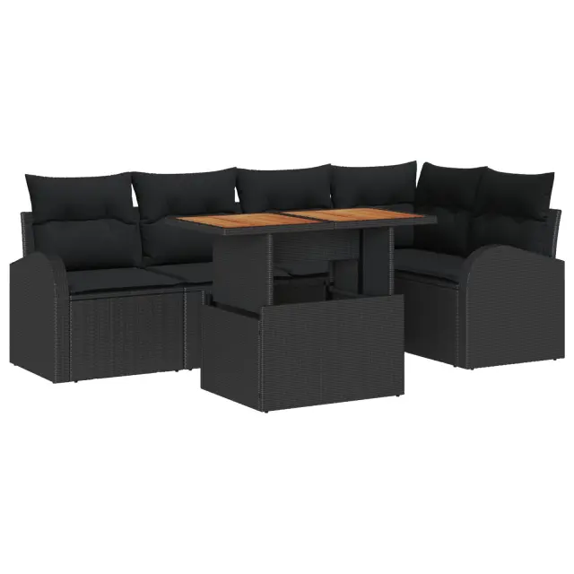 Ta vrtna jedilna garnitura je vse o stilu in praktičnosti, narejena za uživanje na prostem. S moden črn poli ratan okvir, povezan z vremensko odporen akacijev les, ji daje sodoben občutek, ki prinaša novo energijo v vsak vrt ali patio. Ponuja prijetno sedenje in doda malo elegance vašim zunanjim zbiranjem.