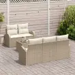 Ta vrtna kavčna garnitura je super mešanica stila in funkcionalnosti, kar jo dela fantastičen dodatek vsakemu zunanjemu prostoru. S šestimi ujemajočimi se kosi v prijetni bež barvi ponuja udobno sedenje za do pet ljudi, kar je super za zabave, družinske trenutke ali preprosto uživanje na soncu.