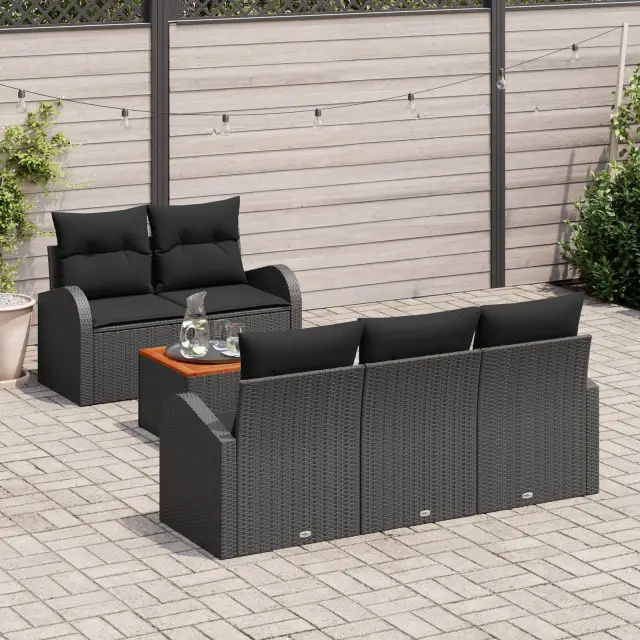 Ta 6-delna vrtna sedežna garnitura je super kombinacija sloga in funkcionalnosti. Idealna je za osvežitev zunanjih prostorov, kot so terase, balkoni in vrtovi. Eleganten črn dizajn, skupaj z trpežnimi materiali, doda vzdušje za druženje.