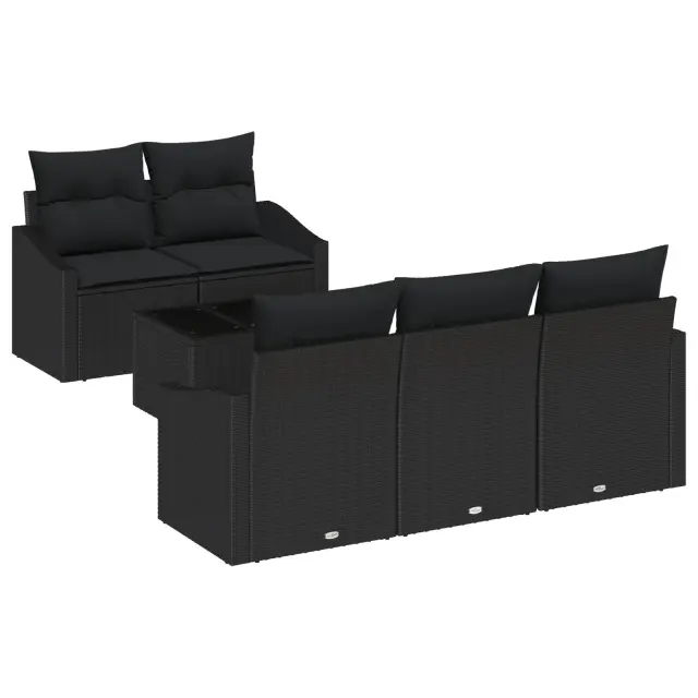 Ta moderna vrtna sedežna garnitura združuje kakovosten poli ratan s prijetnimi blazinami. Idealen prostor za sprostitev na prostem in druženje s prijatelji. Njena elegantna črna barva se prilega vsakemu zunanjemu okolju, kar jo dela idealno za balkone, terase ali vrtove.