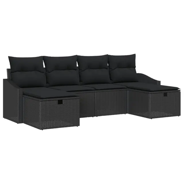Ta 6-delna vrtna sedežna garnitura v črni barvi je odlična za zunanje družabne dogodke ali lenarjenje. Njena elegantna zasnova se super prilega vsakemu vrtu, kar ga naredi zelo vabljivega s svojim ležernim stilom in modernimi barvami.