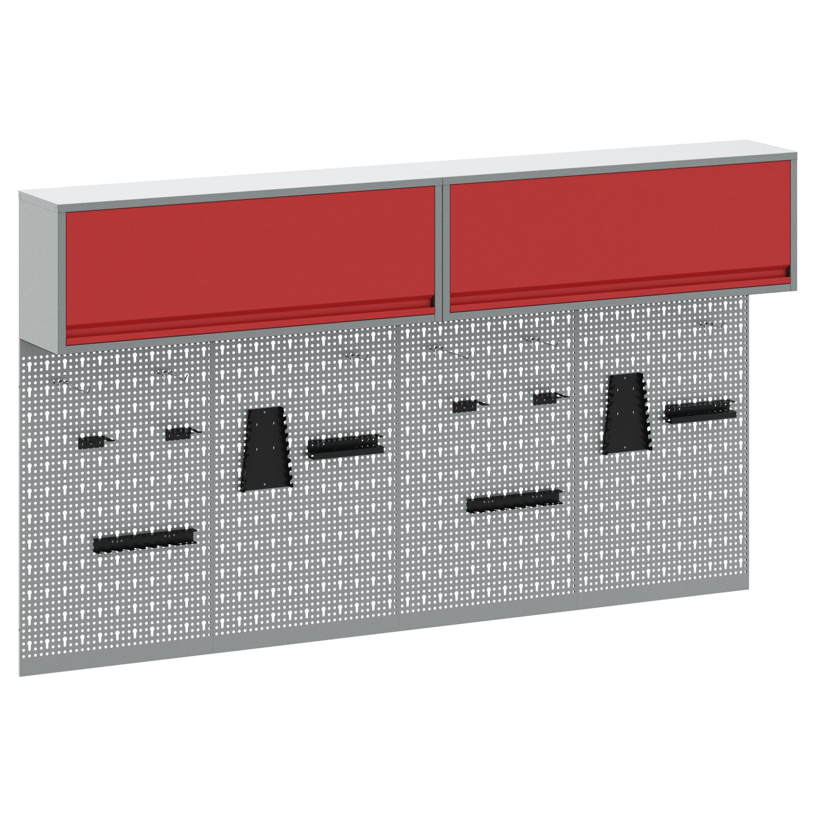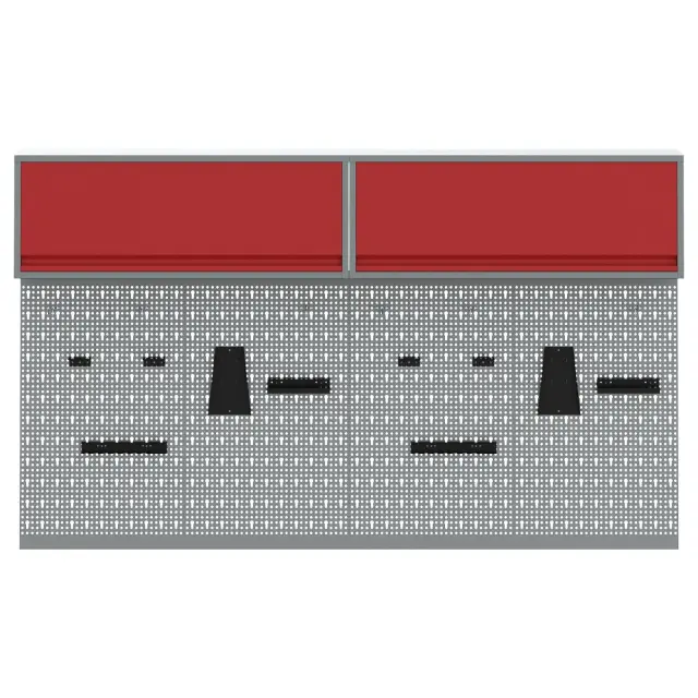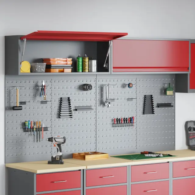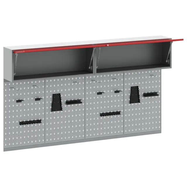 Ta set industrijskih orodnih panojev je pravi must-have za ureditev tvoje garaže ali delavnice. S stilno sivo in rdečo barvno shemo ni le praktičen, ampak tudi super izgleda, kar dodaja moderno industrijsko vzdušje tvojemu prostoru.