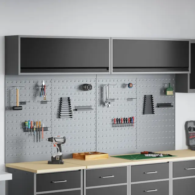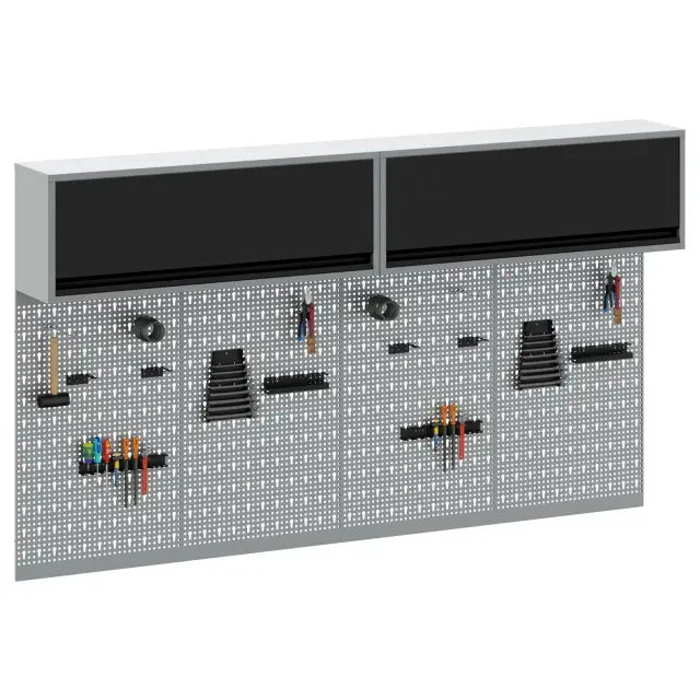 Ta set s sivimi stenskimi paneli za orodje je pameten način, da orodja ohraniš urejena in enostavno dostopna, kar ga naredi super za garaže in delavnice. Z modernim industrijskim stilom in fantastično končno obdelavo, ti paneli ne le, da držijo orodja, ampak tudi izgledajo dobro.