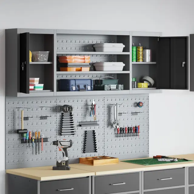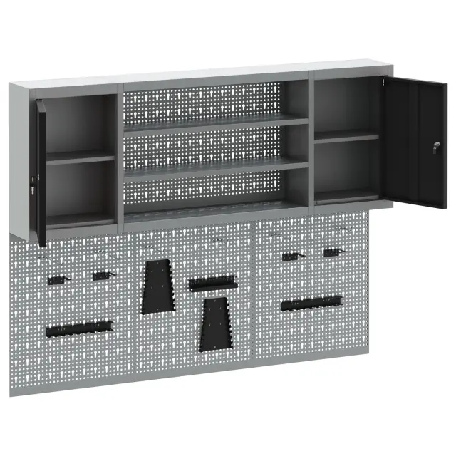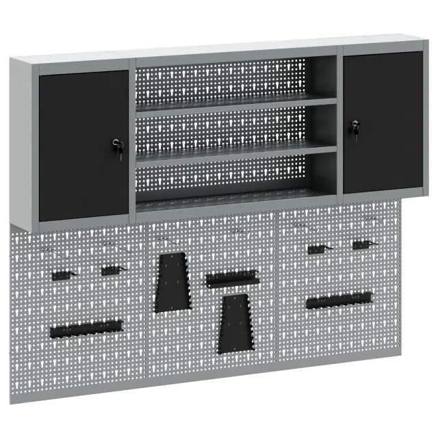 Ta velika industrijska omara za shranjevanje orodja je odličen in eleganten način za ohranjanje organiziranega delovnega prostora. Njena pravokotna oblika iz trdnega jekla doda moden občutek vsakemu delavnicemu ali garažnemu prostoru, obenem pa omogoča lahek dostop do orodij. Tako ohranja red in čistočo, kar zagotavlja najboljšo izkušnjo.