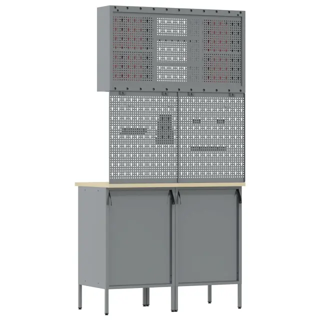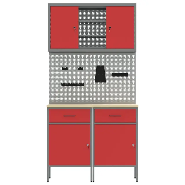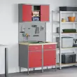 Ta industrijski delovni kabinet je narejen za tvojo garažo ali delavnico. Služi kot stil in moč za vse tvoje potrebe po shranjevanju. Z drzno rdečo in sivo barvo se odlično ujema in nudi veliko prostora za orodja – idealno za vse, ki radi ustvarjate.