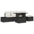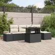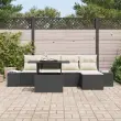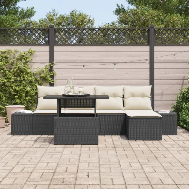 Ta vrtna sedežna garnitura prinaša stil in udobje v tvoj zunanji prostor. S svojim elegantnim črnim in krem izgledom ter pletenim ratanom je hkrati trendovska in praktična za vsako teraso ali vrt.
