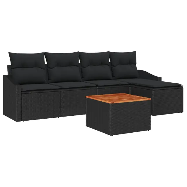 Ta set vrtnih sof doda klasičen pridih zunanjim druženjem, saj vaš balkon ali vrt spremeni v sproščujoč salon. Čudovita kombinacija črnega poli ratana in stilske akacije ustvari vabljiv izgled, idealen za uživanje v soncu s prijatelji in družino.