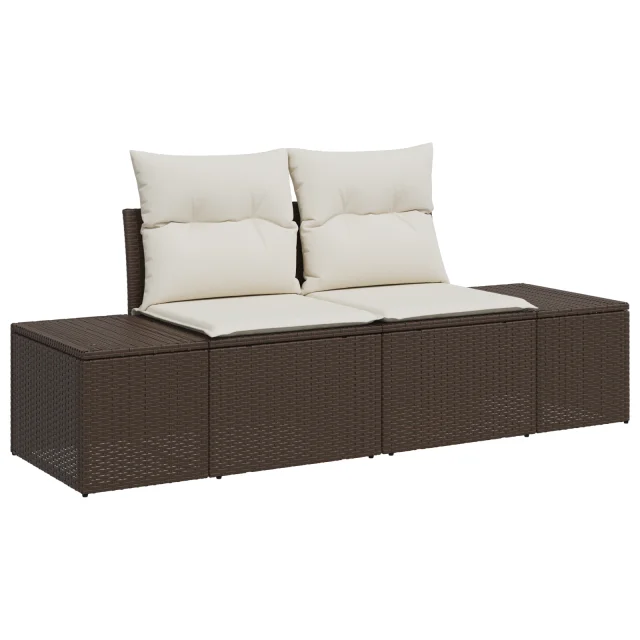 Ta set modernih vrtnih kavčev s 6 kosi prinaša udobje in stil za tvoje zunanje sproščanje. Z lepo rjavo in kremasto barvno kombinacijo super izgleda na patio ali balkonu, kar ti omogoča, da ustvariš miren prostor za sprostitev in druženje.