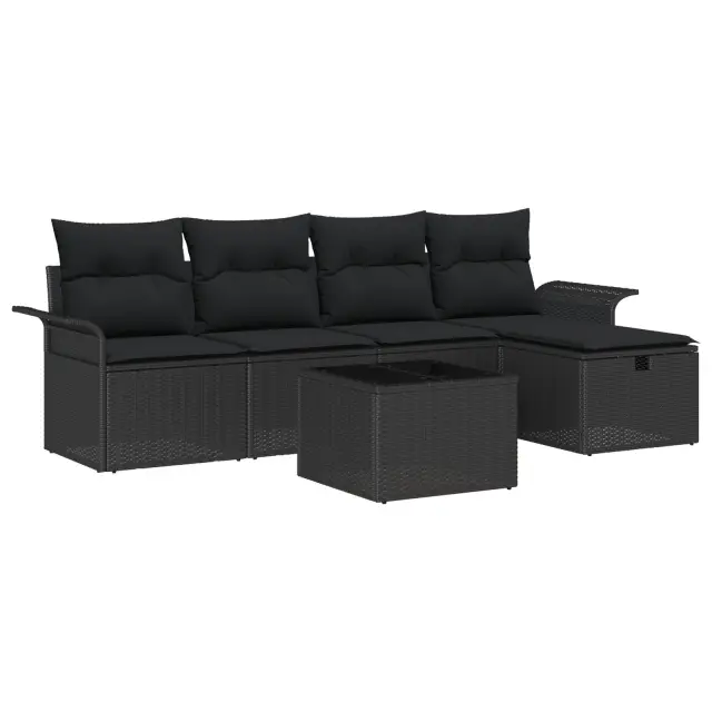 Ta 5-delni vrtni kavč set je odlična mešanica udobja in sloga, popoln za preoblikovanje tvojega zunanjega prostora v chill območje. Sodobna zasnova poli ratana z mehko blazino te vabi, da se sprostiš in uživaš na soncu ali opazuješ zvezde ponoči, kar ga dela idealnega za patia, balkone ali vrtove.