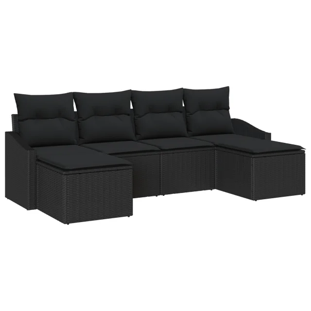Ta 6-delni set zunanjih sekcijskih kavčev je super kombinacija sloga in udobja, idealen za sprostitev in zabavo na tvojem vrtu ali balkonu. Sodobna črna zasnova iz poli ratana daje moderni videz, vremensko odporne blazine pa poskrbijo, da ga lahko uživaš skozi celo poletje.