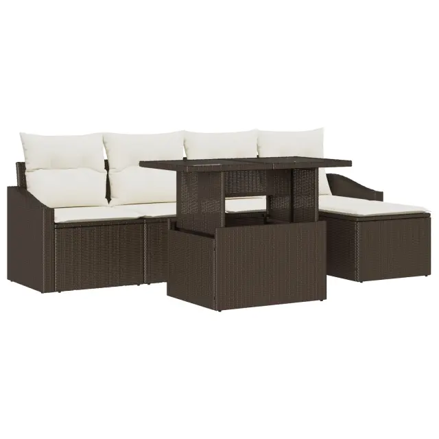 Ta 6-delni vrtni sedežni set s blazinami združuje praktičnost in slog, kar prinaša odlično mešanico udobja in stila za vašo zunanjo sprostitveno površino. Zasnovan je tako, da sprejme do pet oseb, ta čudovit set je odličen za druženje s prijatelji ali sprostitev po napornem dnevu, njena moderna zasnova pa dvigne dekor vašega patio ali balkona.