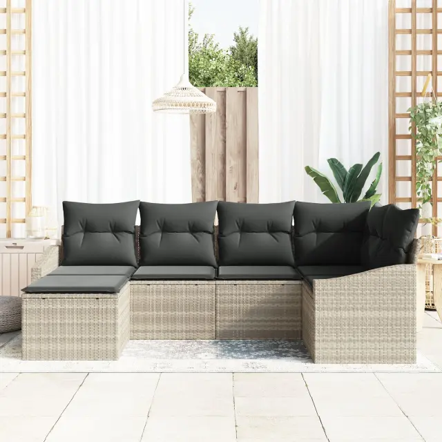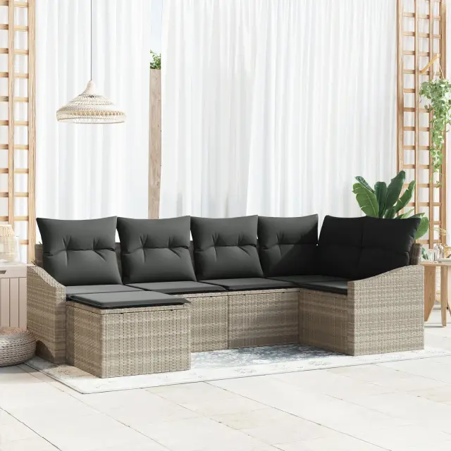 Ta vrtni jedilni set dobro združuje stil in funkcionalnost, nudi udoben prostor na prostem za sproščujoče klepete. Narejen iz trdnega poli ratana v lepi bežni barvi in dopolnjen z mehakimi črnimi blazinami, se brez težav prilega različnim zunanjim prostorom, povečuje videz in udobje.
