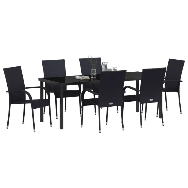 Ta vrtna jedilna garnitura združuje stil in praktičnost za vaše zunanje prostore. Je narejena s sodobnim pridihom, vsebuje elegantno zasnovane zložljive stole iz vzdržljivega poli ratana. Ne izgleda samo odlično, ampak je tudi super za vsakodnevno uporabo.