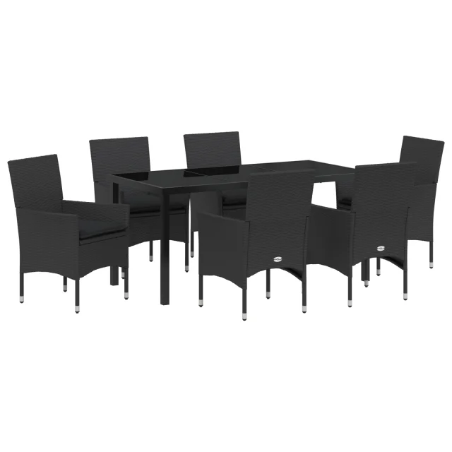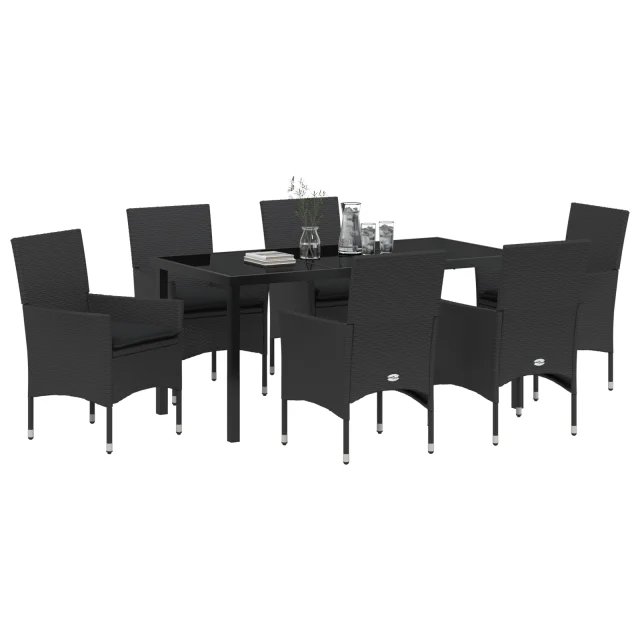 vidaXL 7-delna vrtna jedilna garnitura z blazinami črna poli ratan