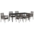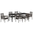 Ta vrtna jedilna garnitura ima moderno zasnovo, ki je narejena za vrhunsko udobje in stil, kar jo naredi za super dodatek vaši zunanji jedilni izkušnji. Ima šest elegantnih stolov in prostorno pravokotno mizo z prijetnim mešanjem rjave in krem bele barve, ki osvetli vsako teraso ali vrt.
