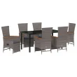vidaXL 7-delni jedilni set za vrt z blazinami Siva poli ratan