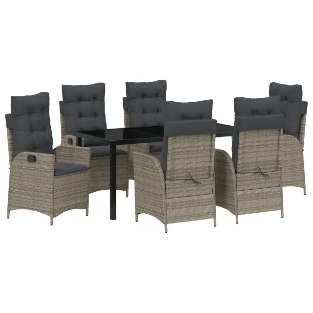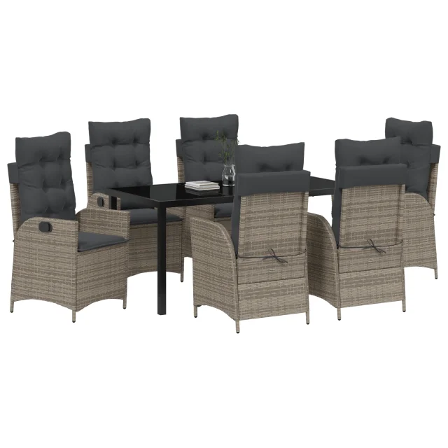 vidaXL 7-delni set vrtnega jedilnega pohištva s blazinami Siva poli ratan