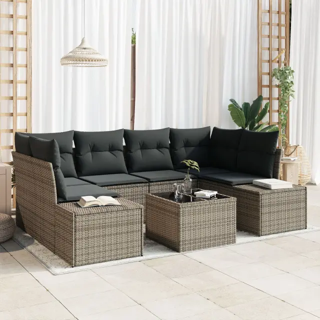 Ta set vrtnih kavčev ni le udobno sedenje za do šest oseb - dodatno osveži vaš zunanji prostor s stilom. Narejen iz trdnega in lahkega poliratana, je popolna kombinacija stila in udobja, idealno za vrtove, terase ali lenarjenje ob bazenu.