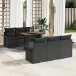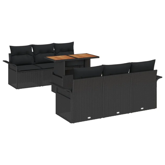Ta čudovit set vrtnih kavčev spremeni točko, kjer preživljaš čas zunaj, v udobno okolje za druženje s prijatelji in družino. S sleek črnim poli ratanom in leseno mizo, ponuja stil in udobje, kar ga dela nujno za tvoj patio ali balkon.