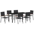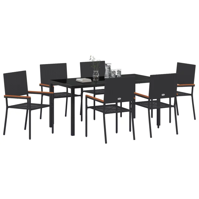 vidaXL 7-delni set za zunanjo jedilnico Črni poli ratan
