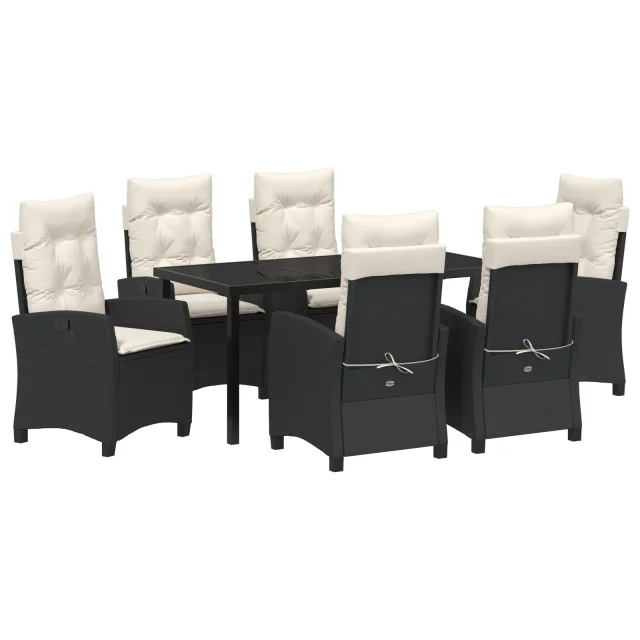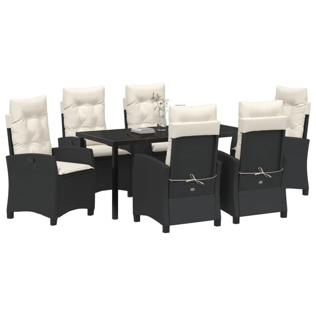 vidaXL 7-delni vrtnarski jedilni set s blazinami Črn Poli ratan