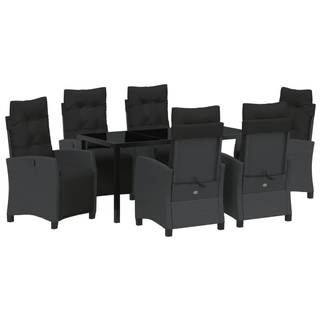 vidaXL 7-delni vrtnarski jedilni set v črnem poli ratanu