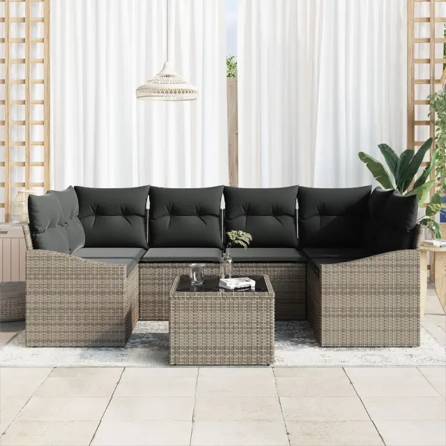 Ta 7-delni vrtni jedilni set je vse o slogu in praktičnosti, narejen iz kvalitetnega poly rattan materiala, da izstopa v vašem zunanjem prostoru. Super je za srečanja ali tihe družinske obroke, trendy črne in smetanove barve pa se brez težav prilegajo povsod.