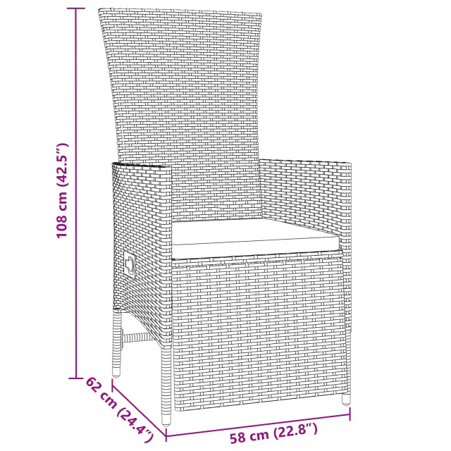 Ta set nagnjenih vrtnarskih stolov vključuje dva stilna naslanjača, ki sta perfektna za vaš zunanji prostor. Dodajata šik pridih kateri koli terasi. Vsak stol ima udobne blazine, ki zagotavljajo sproščujoč občutek na lenarjenju popoldnevih v vašem vrtu ali med jedjo zunaj.