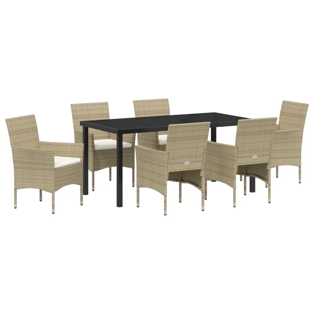 vidaXL 7-delni vrtni jedilni set bež poli ratan