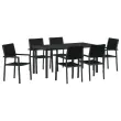vidaXL 7-delni vrtni jedilni set črne poli rattan