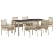 vidaXL 7-delni vrtni jedilni set s blazinami bež poliratana