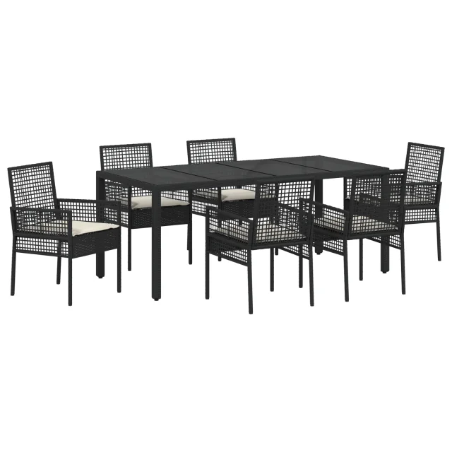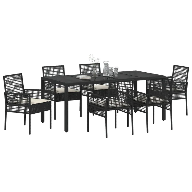 vidaXL 7-delni vrtni jedilni set s blazinami črna poli ratan