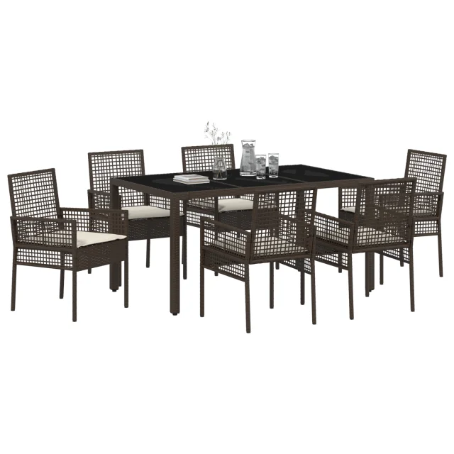 vidaXL 7-delni vrtni jedilni set s blazinami rjav poliratan