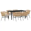 vidaXL 7-delni vrtni jedilni set s blazinami Rjava Poli ratan