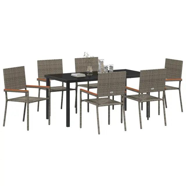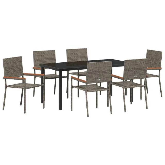 vidaXL 7-delni vrtni jedilni set siva poli ratan