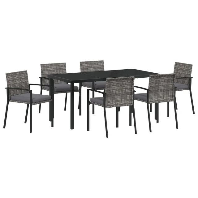 vidaXL 7-delni vrtni jedilni set Siva poli ratan