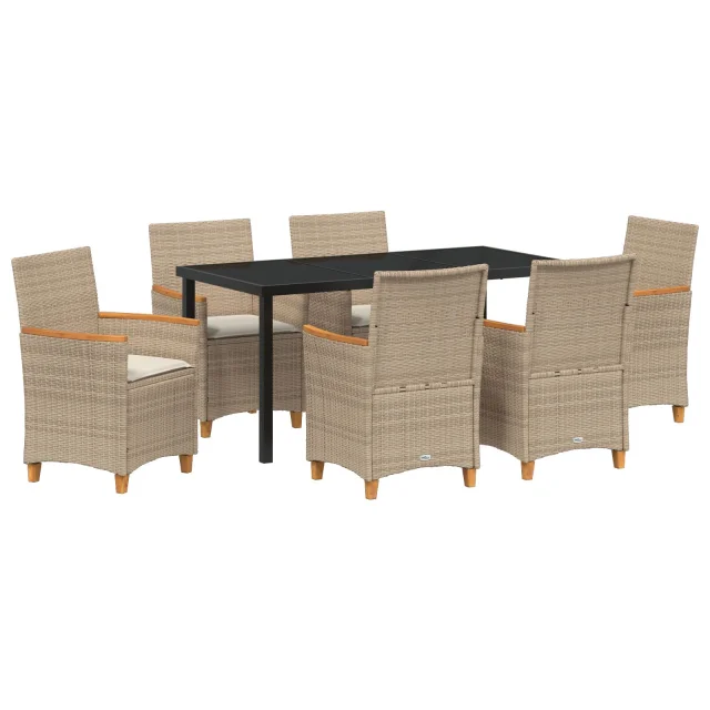 vidaXL 7-delni vrtni jedilni set z blazinami bež poli ratan