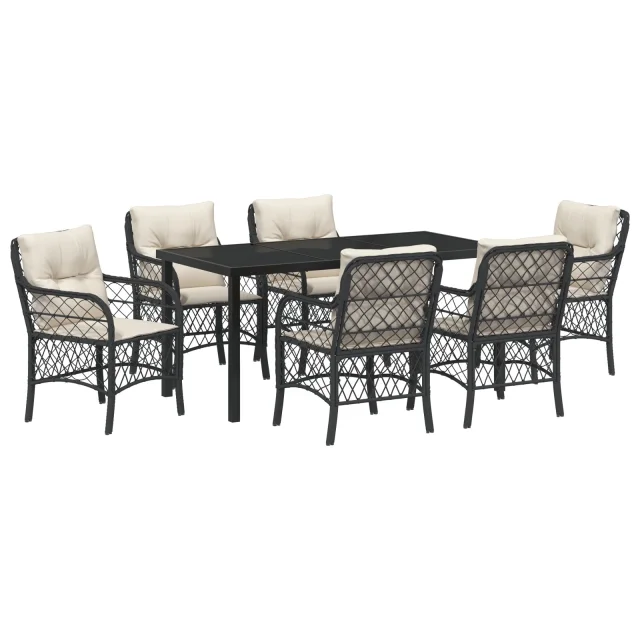 vidaXL 7-delni Vrtni Jedilni Set z Blazinami Črn Poli Ratan