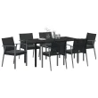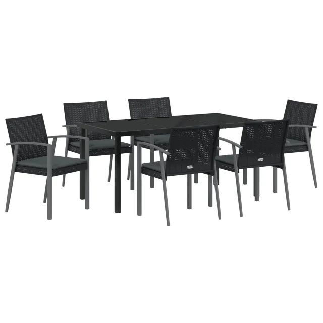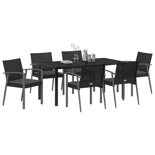 vidaXL 7-delni vrtni jedilni set z blazinami črn poli ratan