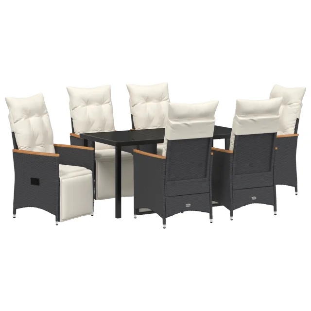 vidaXL 7-delni vrtni jedilni set z blazinami črn poli ratan