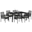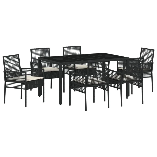vidaXL 7-delni vrtni jedilni set z blazinami črna poli ratan